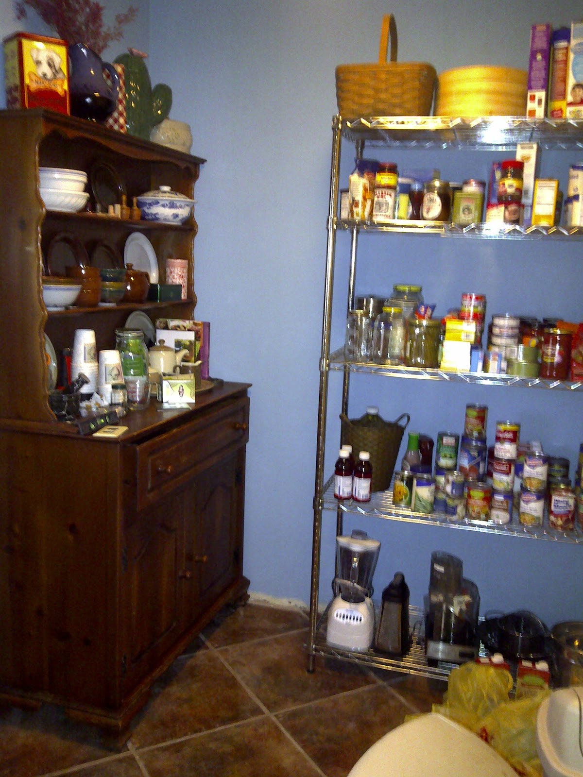 Okay, NABLOPOMO was not a success this time around. Once I started feeling better, breathing is a wonderful thing, I realized I had so much stuff to do! So my blogging every day here in June sort of like, well, failed. But I have a pantry now! Imagine me doing a happy dance, let your mind fill with pictures of celebration, as those are the only types of pics of me you will get to see. I’ve lost 10 lbs. since mid-May but it is going to take several more tens of lbs. to make me want to post pics of myself. But I do have pics to share with you.