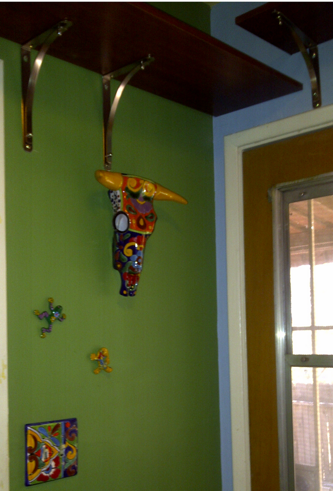 The green wall is now graced by Talavera accents that we purchased at Mi Casa. I cannot speak highly enough of the proprietors who were gracious, quick to help without hovering, and very knowledgeable. If you are in Tucson and want something with a Southwestern or Mexican feel, Mi Casa is the place to go for great gifts and home decor at a reasonable price. I had been dreading the day my husband comes home with a cow skull, which he has been threatening to do for years, as an art piece so I managed to get him a ceramic one that will fill that void (yes, I’m rolling my eyes here) in his life. So I did not get posting done every day this month. But I did gain a pan